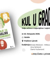 Na prvoj tribini jesenskog ciklusa Kul u gradu, u srijedu 22. listopada u Knjižari Ljevak, razgovarat će se o osjećajima i emocionalnoj pismenosti. O temi govore autorice knjige 'Obrazovanje za emocionalnu pismenost' Anela Nikčević-Milković i Ana Jerković te recenzent Dario Vučenović. Tribinu moderira Sanja Baković.