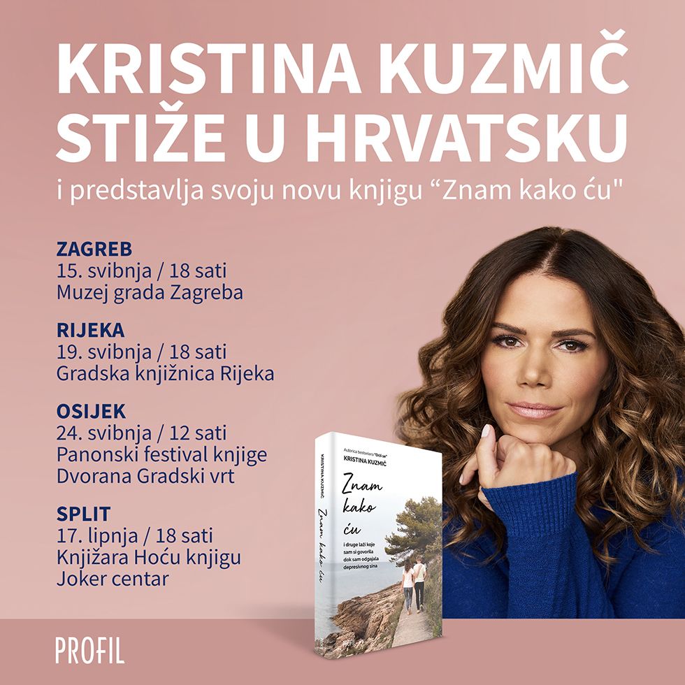 Kristina Kuzmič, svjetski poznata vlogerica hrvatskog podrijetla i autorica bestselera Drži se (Profil, 2021., prev. Klen Šamarinac), boravi u Hrvatskoj tijekom svibnja i lipnja povodom promocije svoje nove knjige Znam kako ću, koja je u izdanju Profila sada dostupna i hrvatskim čitateljima (u prijevodu Sanje Petrušić Goldstein i Kristine Kuzmič).