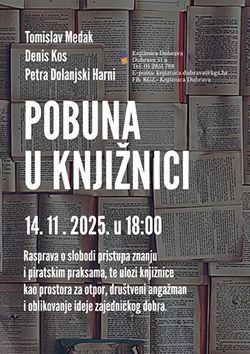 U petak, 14. studenoga, u 18 sati u Knjižnici Dubrava (Odjel za odrasle) održava se tribina „Pobuna u knjižnici“, u sklopu Mjeseca hrvatske knjige.