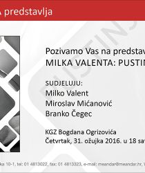 U četvrtak, 31. ožujka u 18 sati u zagrebačkoj Knjižnici i čitaonici Bogdana Ogrizovića održat će se predstavljanje knjige 'Pustinja' poznatog književnika Milka Valenta, njegove jedanaeste pjesničke zbirke.