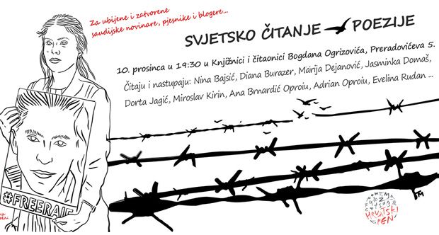 Hrvatski P.E.N. centar poziva vas na čitanje poezije i predstavljanje pjesničke knjige 'Mi nemamo neprijatelja : Izabrane pjesme', Liu Xia i Liu Xiaobo. Svoje pjesme čitaju: Ivana Buljan Legati, Diana Burazer, Goran Čolakhodžić, Branimir Dropuljić, Lana Derkač, Ivan Koprić, Dinko Kreho, Sanja Lovrenčić, Sonja Manojlović, Damir Radić i Nenad Rizvanović.